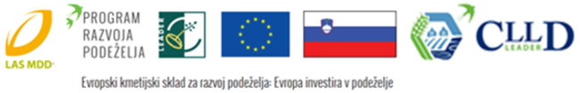 | Operacijo delno financira Evropska unija iz sredstev Evropskega kmetijskega sklada za razvoj podeželja (EKSRP), pristop CLLD- izvajanje lokalnega razvoja, ki ga vodi skupnost, v programskem obdobju 2014-2020. |